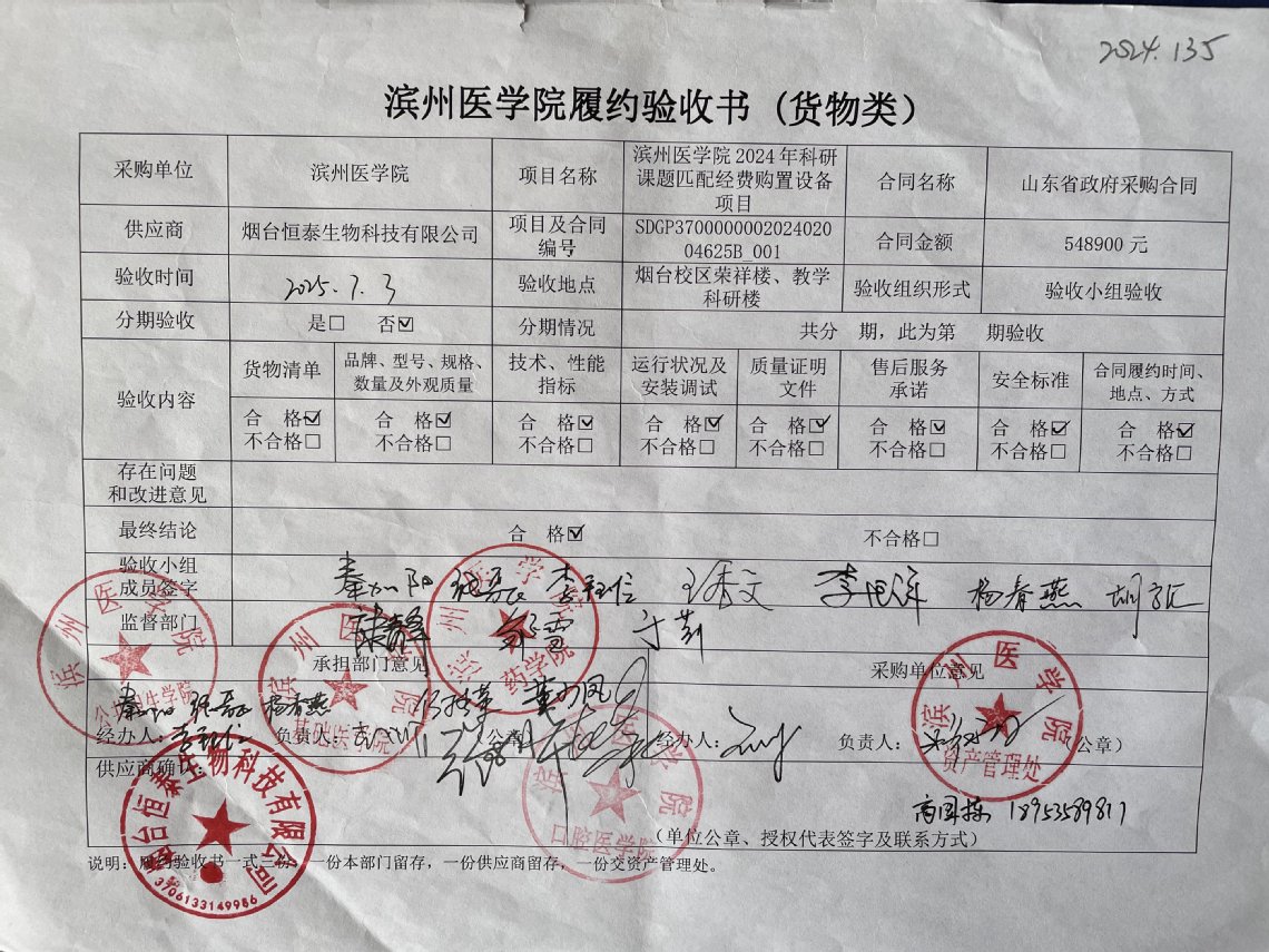 滨州医学院2024年科研课题匹配经费购置设备项目
