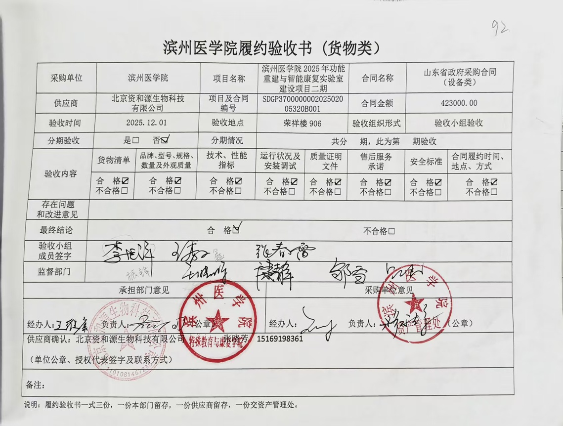滨州医学院2025年功能重建与智能康复实验室建设项目二期