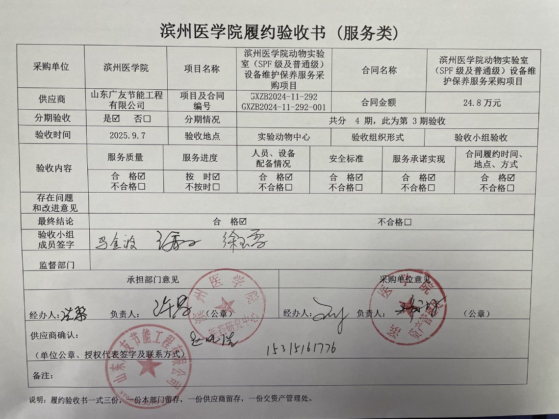 滨州医学院动物实验室(SPF级及普通级)设备维护保养服务采购项目
