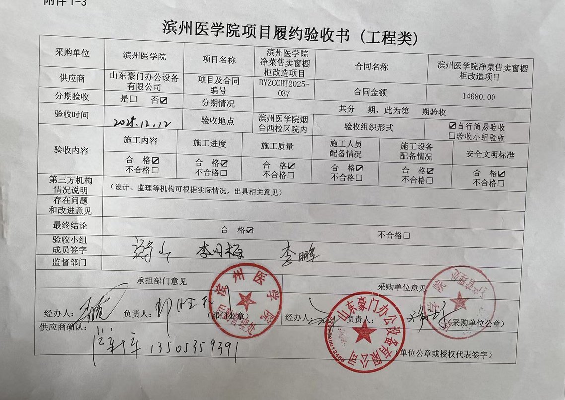 滨州医学院净菜售卖窗厨柜改造项目