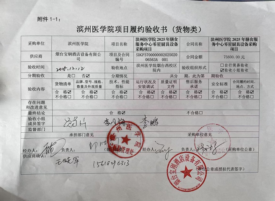 滨州医学院2025年膳食服务中心零星厨具设备采购项目